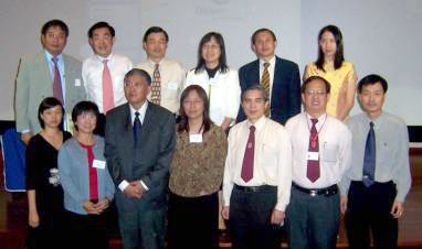 海内外作家、学者与部分筹委会成员合影后排:陈木成、许福吉、蔡志礼、孙爱玲、朱自强、钟韵宜。前排:符慧菁、爱薇、张秋生、霍玉英、蔡子林、陈之权、希尼尔。